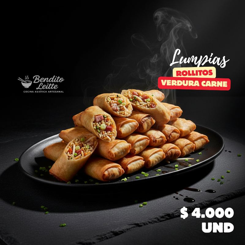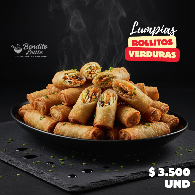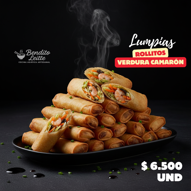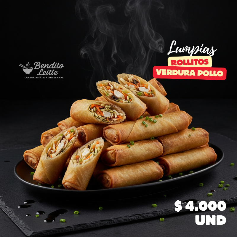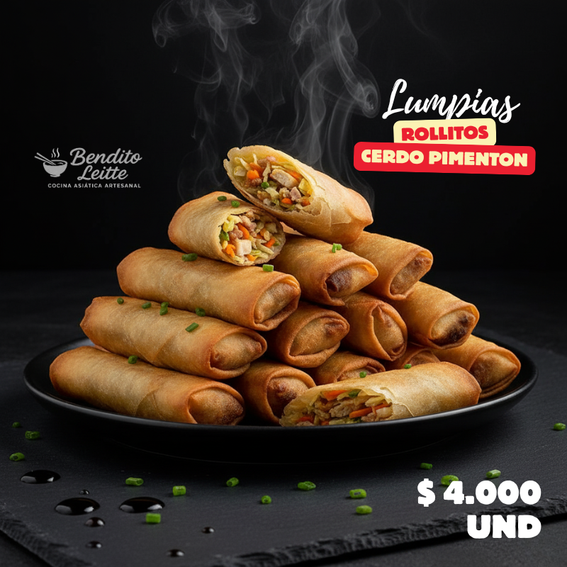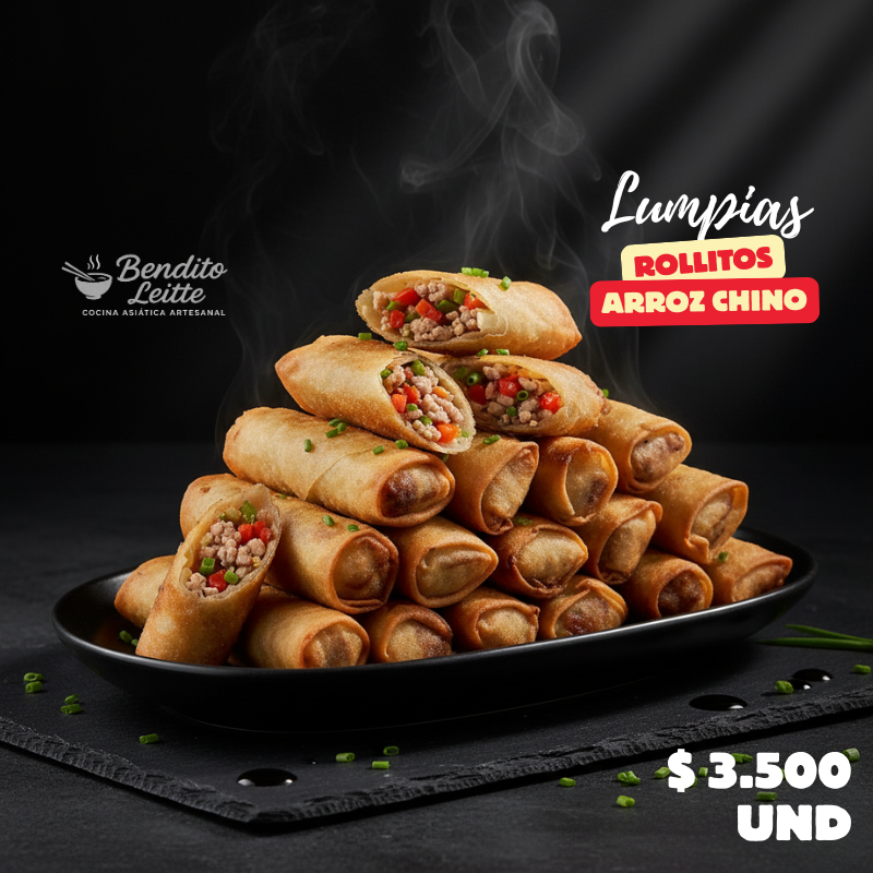 Nuestras lumpias son un clásico de la cocina asiática artesanal, elaboradas con ingredientes frescos y un toque casero que las hace irresistibles. Cada rollito se prepara al momento, logrando esa textura dorada perfecta que resalta los sabores de sus rellenos.