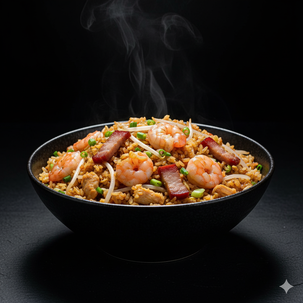 Un clásico de nuestra cocina: arroz salteado al wok con vegetales frescos, especias y el toque artesanal de la casa. Coronado con huevos de codorniz, símbolo de prosperidad en la tradición asiática.